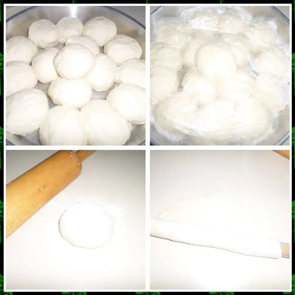 Hamur 15 dakika üzeri kapalı bekletilir ve 16 parçaya bölünür..Daha sonra dolap poşeti veya streç sarılarak kuruması engellenir..