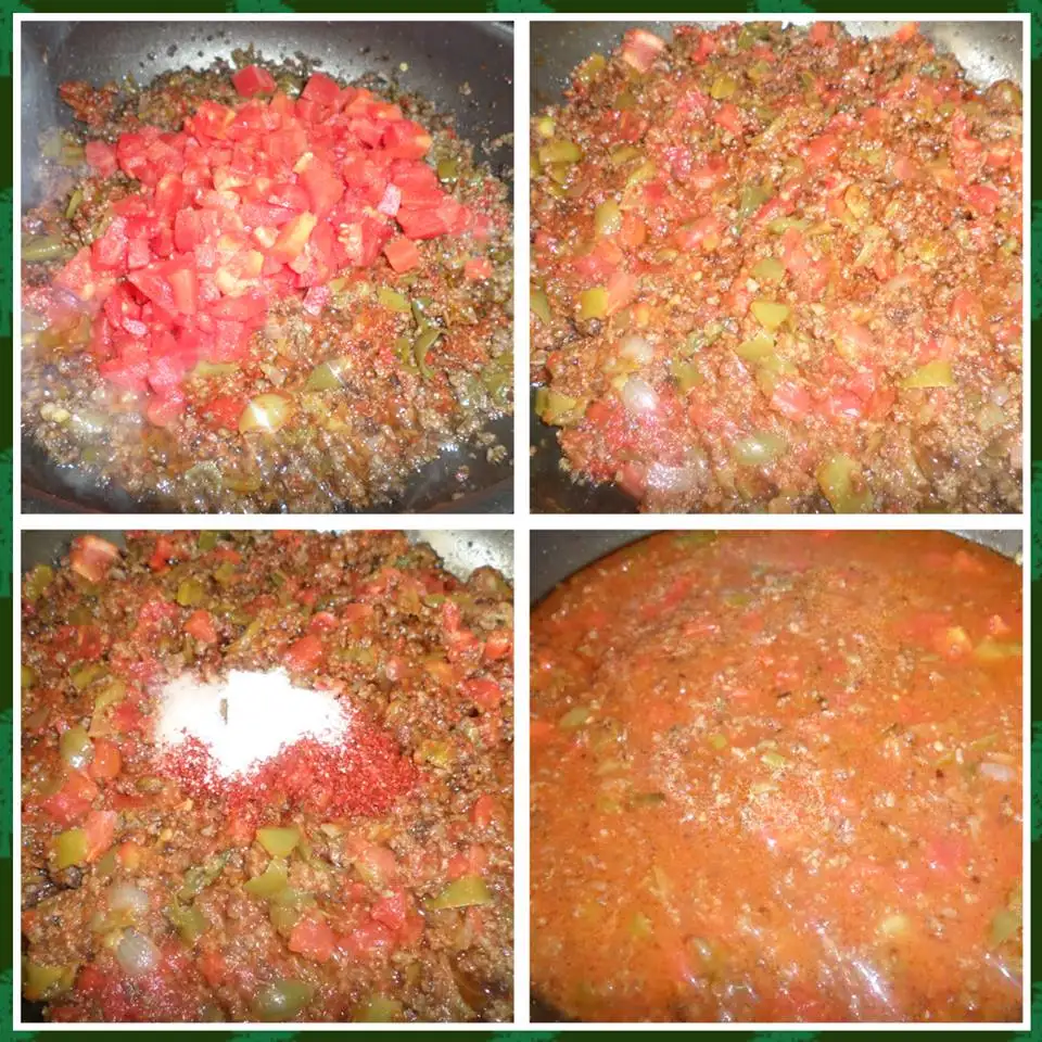 Domates ve 2 kase su eklenir.Daha sonra tuz ,biber eklenir pişirilir..Domatesler pişip biraz suyunu çekince altı kapatılır..