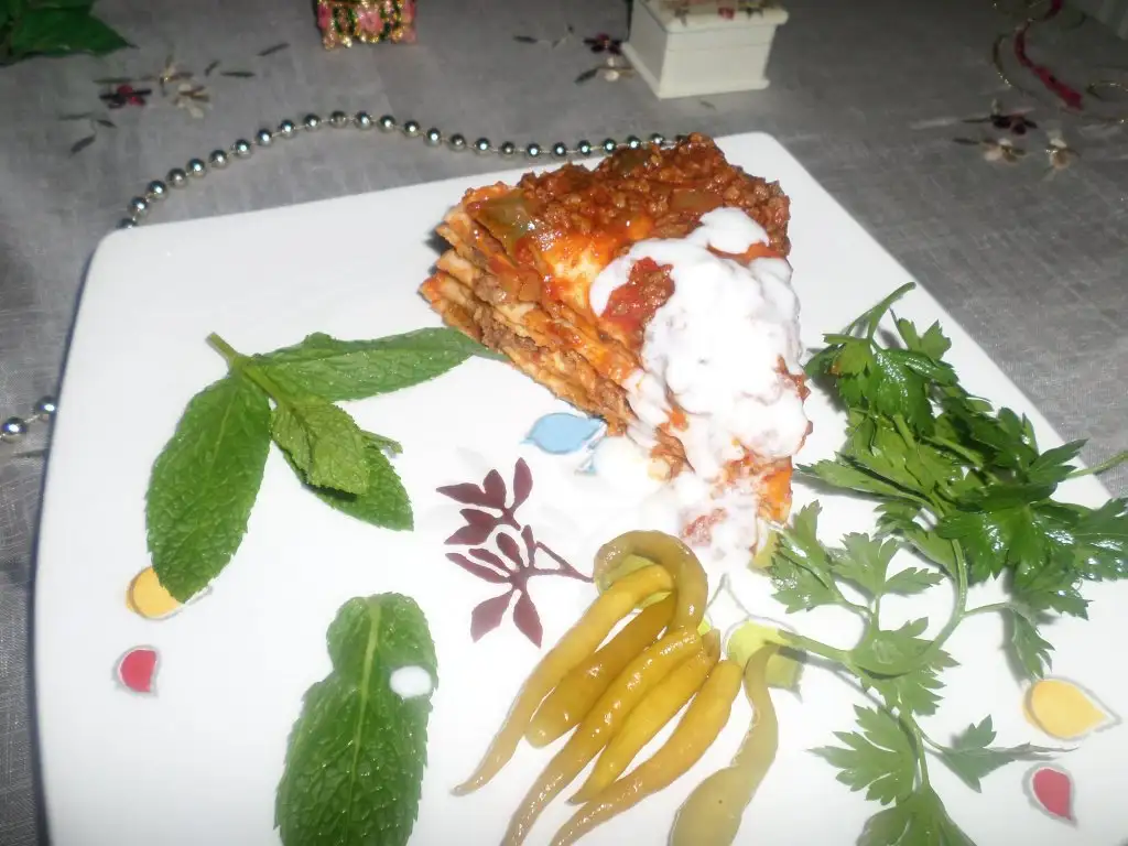 Yemeğin tek sorunu var oda yemesi biraz zorAslında tüm katları çatala dolayıp yoğurda batırarak yenebilir..Ama bu yöreye özgü el ile yenilen bir yemek..