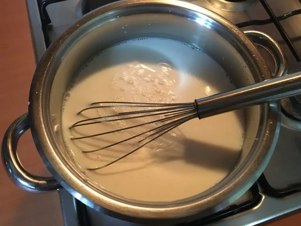 Sütümüz kaynayana kadar ara ara çırpma teli ile karıştırıyoruz.