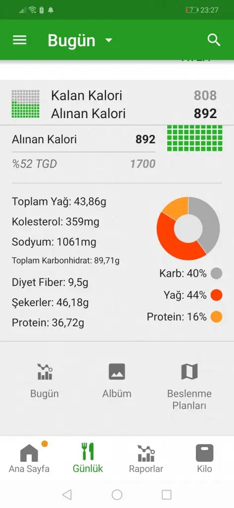 O programda kalori yağ protein karbonhidrat hepsi yüzde olarak yazıyor yüzdesi 50 yi geçmemek şartıyla takip ediyoruz bizde büyük kolaylık
