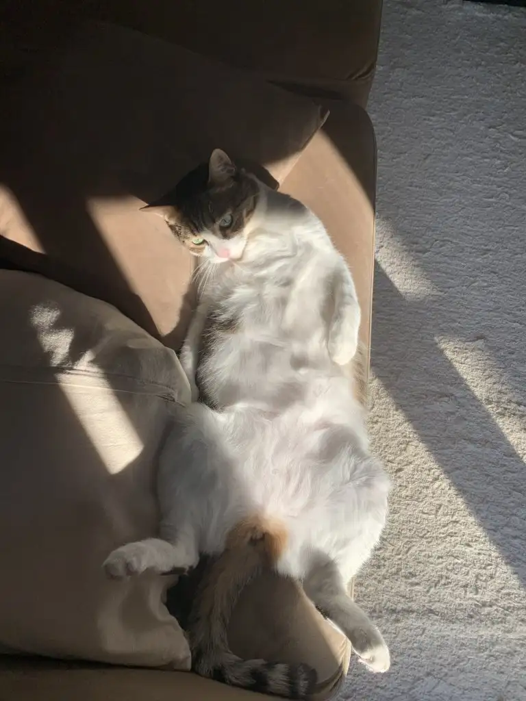 Ben onu bulduğumda biri sokağa atmıştı, kısırlaştırılmıştı. Tekir kedi ama sokak kedisi gibi yemek artıkları yiyemediğinden açlıktan ağlıyordu kapı önünde. Gidip kuru mama aldım da hayvancağızın karnı doydu.