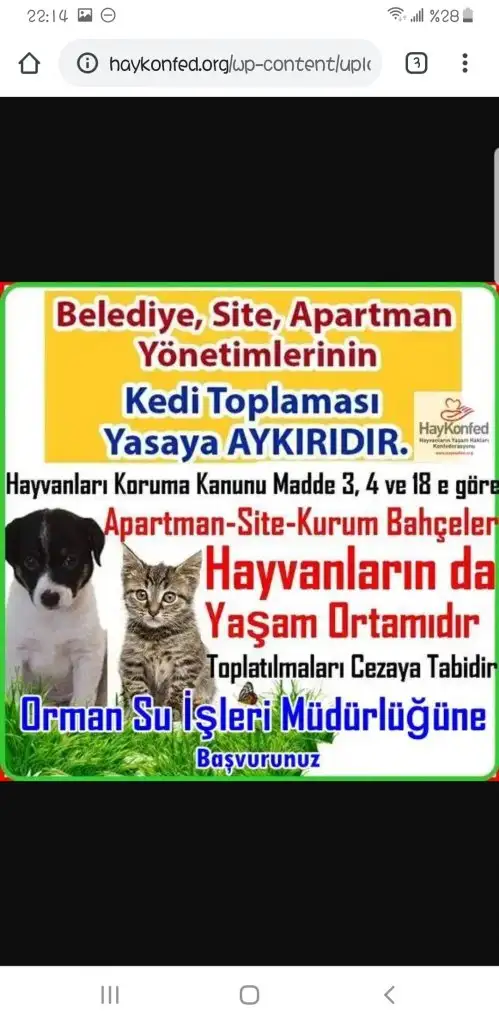 Resmi googledan suan aldim. Daha once eskisehirin cesitli yerlerinde benzeri afisi gormustum. Orman ve su isleri idaresine sikayet ettim. Belediyeye sikayet ettim. Cezayi hangisi verdi bilmiyorum.Veapartmanda bagirdigi kadari ile 350 lira odedigini biliyorum. Birde daha sonrasinda ebb yeni kedi evleri gonderdi ekledigim afisin benzerinin yazisiyla beraber. son olarakta üzerinde benim daireme ait oldugu yazan mala zarar verdigi gerekcesi ilede savciliga sikayet ettim. Savciliktan henuz bir sey cikmadi. Sabirsizlikla bekliyorum ne olacak.