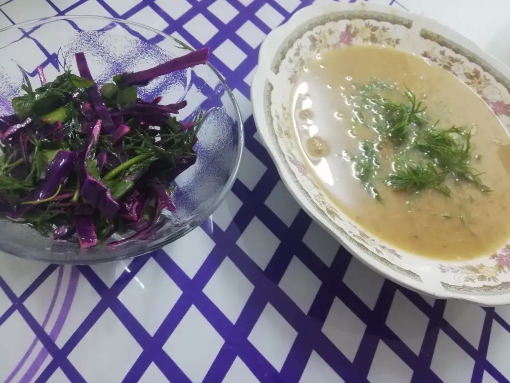 Mercimek çorbası : 1 çay bardağı yeşil yarım çay bardağı kırmızı mercimek, 2 baş soğan,2 diş sarımsak,pul biber 1 tatlı kaşığı zeytin yağı hepsi kaynadıktn sonra blendırdan geçiyorum en son üstüne dere oto atıyorum kandınsal hormonlarada çok faydalı dere oto herşeyde yemeye çalıyorum.