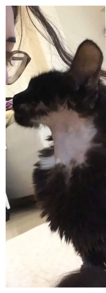 Evet boynu komple gidikti, bacaklarında da vardı kellikler. Hatta bacakları komple siyahtı, tüyler döküldü, yerine çıkan tüyler beyaz oldu 🥲 1 gecede kadir inanır gibi beyazladı çucuum