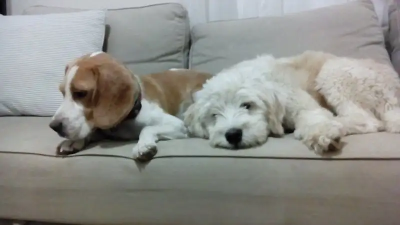 kızıl olan beagle - beyaz olan irlanda terieri (büyük yok terier, golden boyunda ebatında)sanırım bu zavallımı küçük boy sanıp almışlar bakmışlar büyüyor durmuyor sokağa atmışlar. bende zayıflıktan ölmek üzereyken buldum 8 kilo muydu neydi. aldım 15 kilo kadar getirdim. ırkının min. kilosu bu. sonrada sahiplendirdim. tabii 8-9 ay bende kaldı.