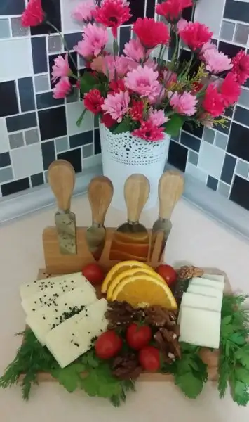 Tabii bu böreği kuru kuru ikram etmek olmaz,yanında damak tadımıza,yaratıcılığımıza ve hayal gücümüze bağlı kahvaltılıklar hazırlıyoruz.
