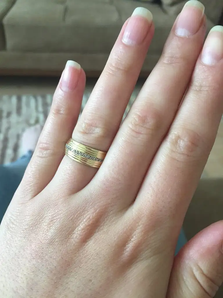 1 yılı devirdik ilk yüzüğümüz bir kez temizlik yaparken çöpe atmıştım deli gibi evde aradım ve bulamadım.Eşim temizlik yaparken çöpe mi attın dedi gittik çöpü karıştırdık bulmuştuk o gün bugündür asla parmaktan çıkmaz eşiminde taşsız aynı model![]()