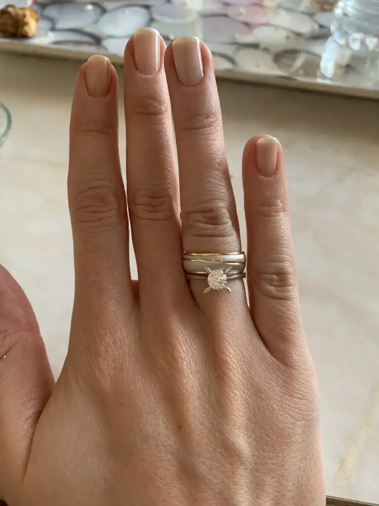 Bu sefer kökten hepsini değiştirdim. Desenli alacaktım alyansı ama bu sefer de klasik alayım dedim. Gerçekten çizik çok belli ediyormuş. Tektaşı da zümrüt renk aldım hevesim vardı. Komple bir değişim olmuş oldu farklılık.