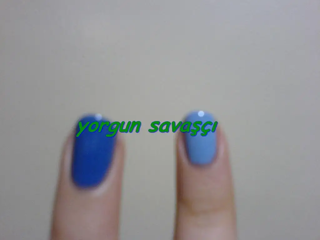 bunlar da maviler, ama böyle cart değil koyu mavi, gayet aklı başındaaçık tek parmakta iyi durdu ama 10 parmakta ölü gibi durdu, yaza bronz tene sürcem inşallah