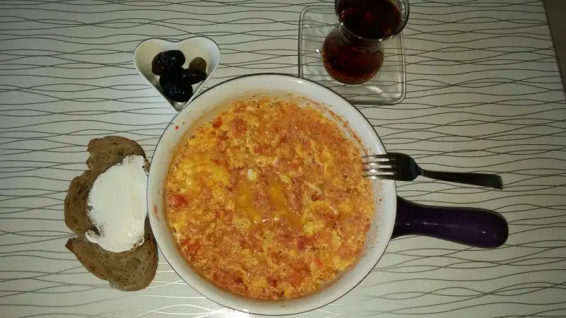 Bu sabahki kahvaltım da menemen oldu.. Bebeğimle birlikte hepsini yedik:kk77: