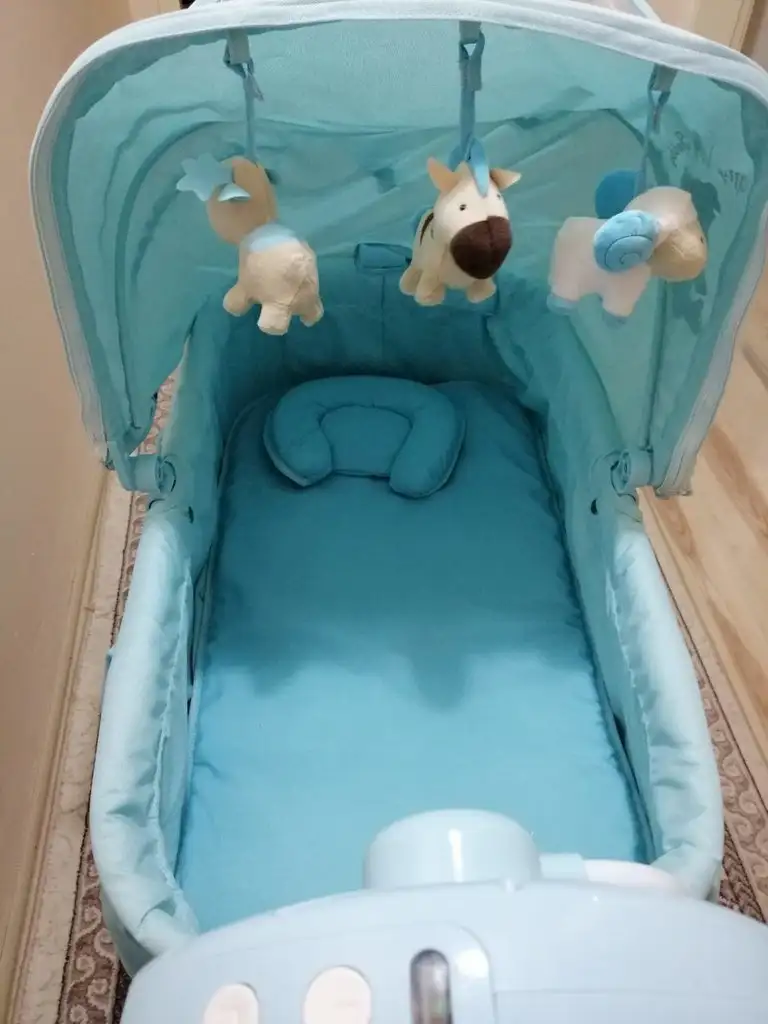 İKİZLERİMDEN BİRİNİ KARNIMDA KAYBETTİĞİM İÇİN ALMIŞ OLDUĞUM BEŞİKLERDEN BİRİNİ SATIYORUM.HİÇ KULLANILMAMIŞ SIFIR MAVİ RENKLİ 5 SALLAMA AŞAMALI 10 MÜZİK TONU İSTER FİŞLİ İSTER PİLLİ KENDİNDEN SALLANANAN ZAMAN AYARLI BEŞİK.