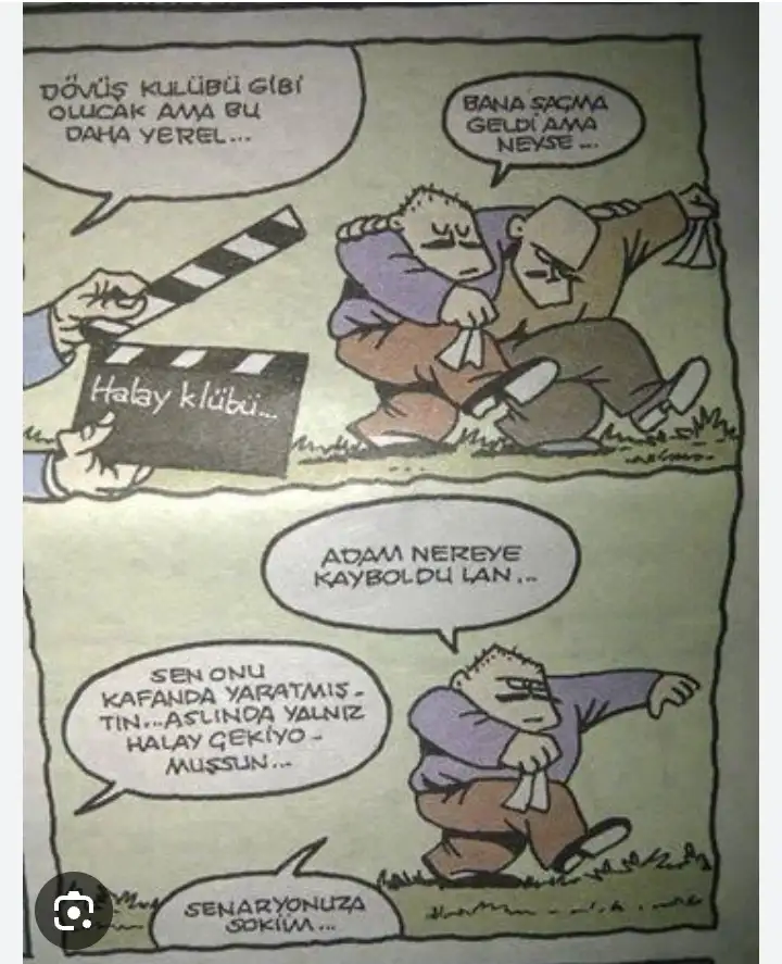 Tamam bu çok iyiAdam o kadar umursamamis yok saymis ki, yakininda halaya bile girmis. Hic anlam yukleme, tamamen yok sayma hali bu, kendimden biliyorum