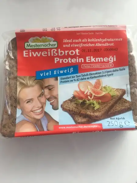 Öğlen:1 dl şekersiz fıstık ezmesi sürülmüş protein ekmeği yedim.