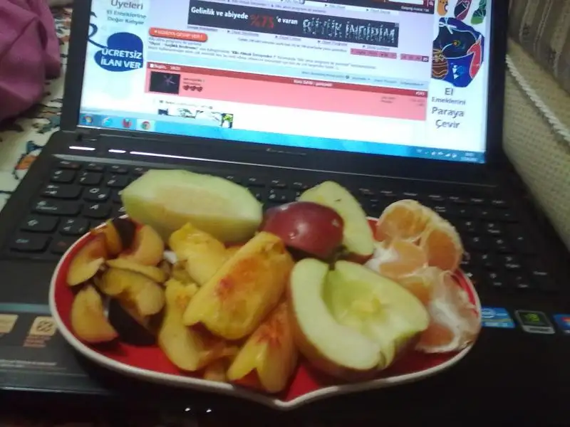 Şimdi de meyvelerimle baş başayım. İlerleyen saatlerde de mısır patlatmayı düşünüyorum :):52: