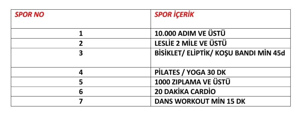 Aslında bu listenizi kavradigimda mantıklı bulmuştum. Bir suru senecekle uğraşacağına hergune bir spor yazıp numaralandırma daha mantıklı sanki.
