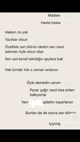 Kvdem burada 2 haftadır ( normalde başka ilçedirler ) sabah onun katında kahvaltı yapıyorduk. Eşim mesaj attı iş yerinden arkadaşı bugün veya yarın bize gelin demiş. Bende hastayım haftaya gidelim dedim eşime. Yarına toparlarsın yarın gidelim dedi. Yarınada annem gelebiliriz demişti bayadır görüşmüyoruz. Bende dedim yarın annemler gelebilir. Onlar zaten erken kalkıyor pazar gelsinler dedi eşim.