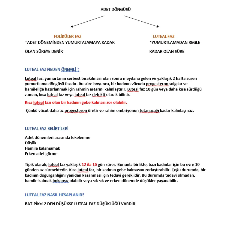 Baya önemli bir şeymiş, hesaplayın bakalım kaç çıkacak sizin luteal fazınız.Luteal faz düşüklüğü progesteron yeterli üretilmediği için rahim içi tabakanın gebeliğe uygun hale gelmemesine sebep oluyormuş.
