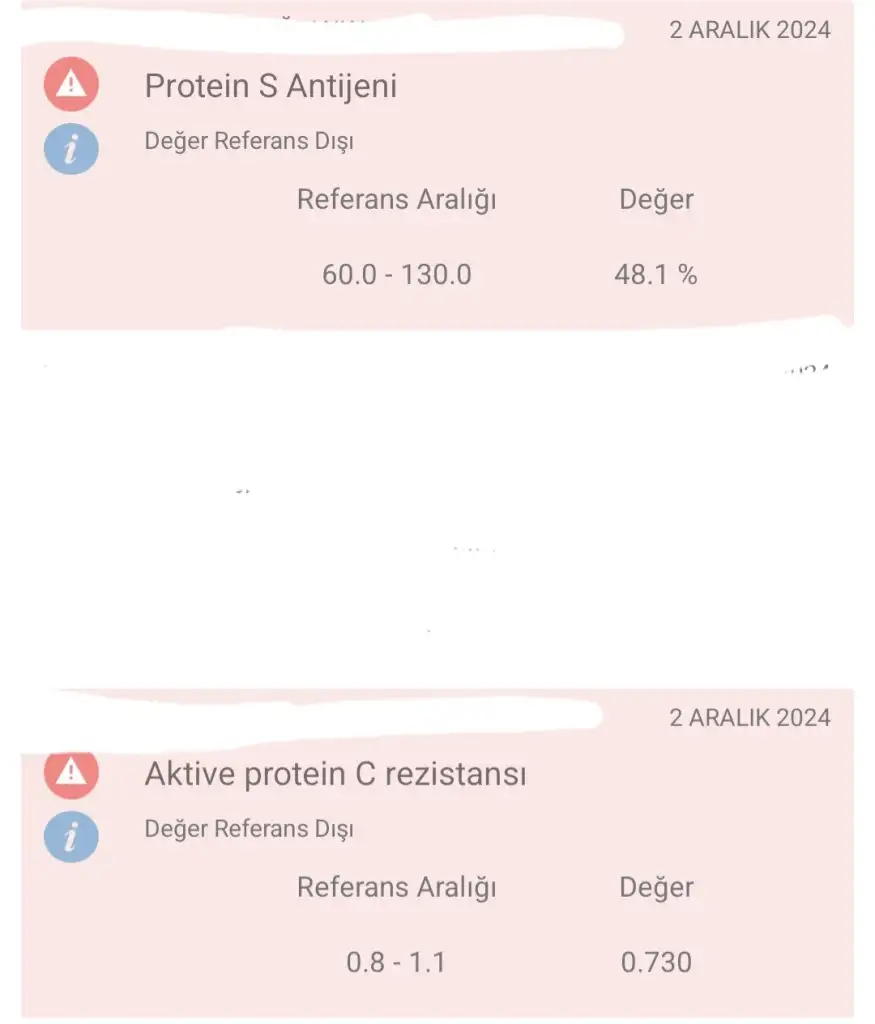 Merhaba arkadaşlar 4 aralıkta kahverengi lekeleme ile başlayan sonra da kanamaya pıhtılı kanama ve parça düşürme ile devam eden bir hafta geçirdim ağrısı ise çok fazlaydı bende pihtilasma varmis yeni öğrenmiştim coraspin kullanıyorum beynimdeki damarlarda tıkanıklık olduğu için .hocam pihtilasma icin kan vermemi istedi ve bu iki sonuç böyle çıktı bilen varsa lütfen yol göstersin bunların ne anlama geldiğini bilmiyorum bu tahlilleri veren yada bilen varmi acaba