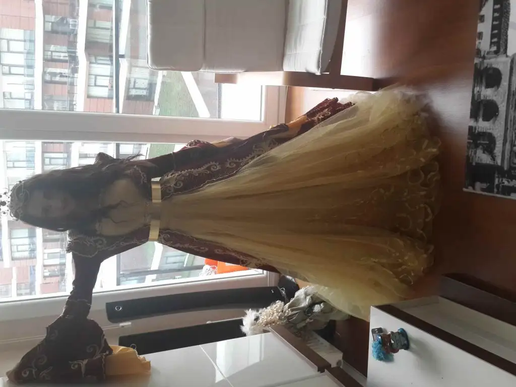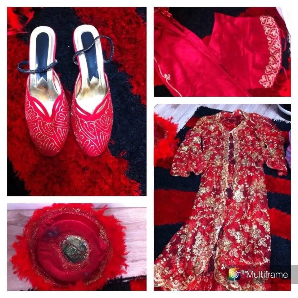 İki parça bindallım var koyu sarı işlemeli askılı elbise üzerine kırmızı üzerine altın rengi işlemeli kaftan şeklinde çok beğenerek almıştım 2 saat giyildi ilgilenirseniz özelden yazabilirsiniz