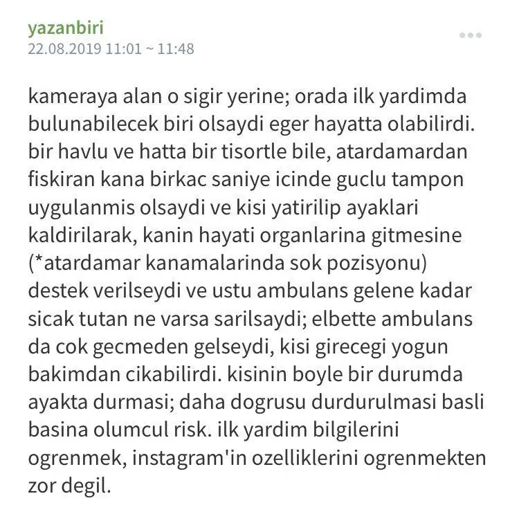 Ha savunan da aynı kişi yani. Ben araları okumadım da... Ya işte troll mroll diyerek bunları da kanıksatıyoruz; insanların iki gram ilgi görmek için yapacakları şeylerin sınırı kalmamaya başladı. Gözünün önünde ölen kadını soğukkanlılıkla sanki korku filmi çekercesine kameraya alan adamla aynı ülkede yaşıyoruz, belki onun benzerleriyle aynı ortamda bulunuyoruz, konuşuyoruz. Bilmiyorum, ben giderek paranoyaklaşıyorum galiba.