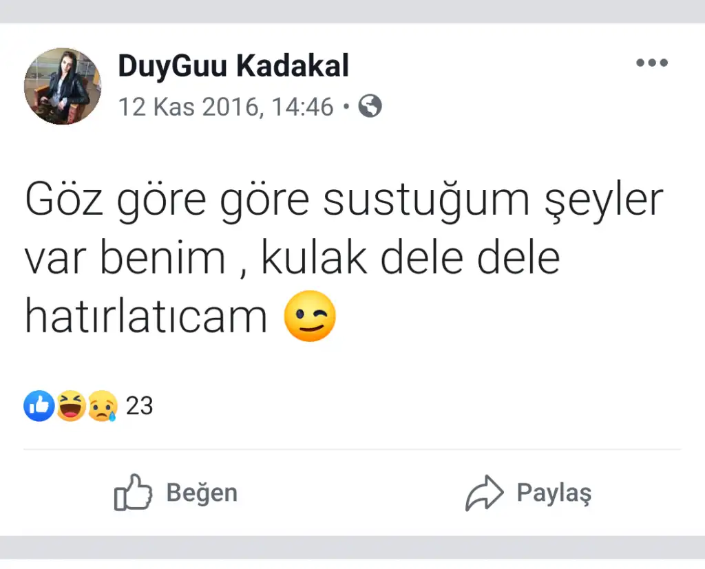 Merak ettiğim için bir araştırdım arkadaşlar bu olay gibi tam tersi olayları, yani kadının erkeği öldürdüğü.. bir kaç haber okudum ve bir kadın eski eşini tabancayla öldürdüğü için müebbet hapis cezası almış . O kadar sinirlendim ki, yanlış anlaşılmasın o kadının müebbet ceza almasına değil, o müebbet ceza alırken hakan kadakal gibilerin 10-15 yıl ceza almasına , üstelik onun yaptığı dehşet bir şekilde yapılmasına rağmen. Bu nedir ya erkeklik indirimi falan mı??