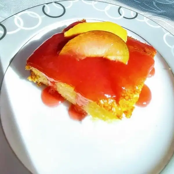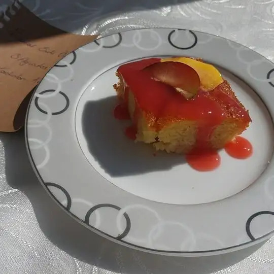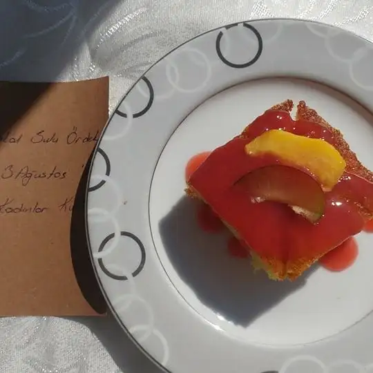 Daha sonra diğer yarısı da dökülerek üzerine yine şeftali dizilir. Eki Görüntüle 2175937