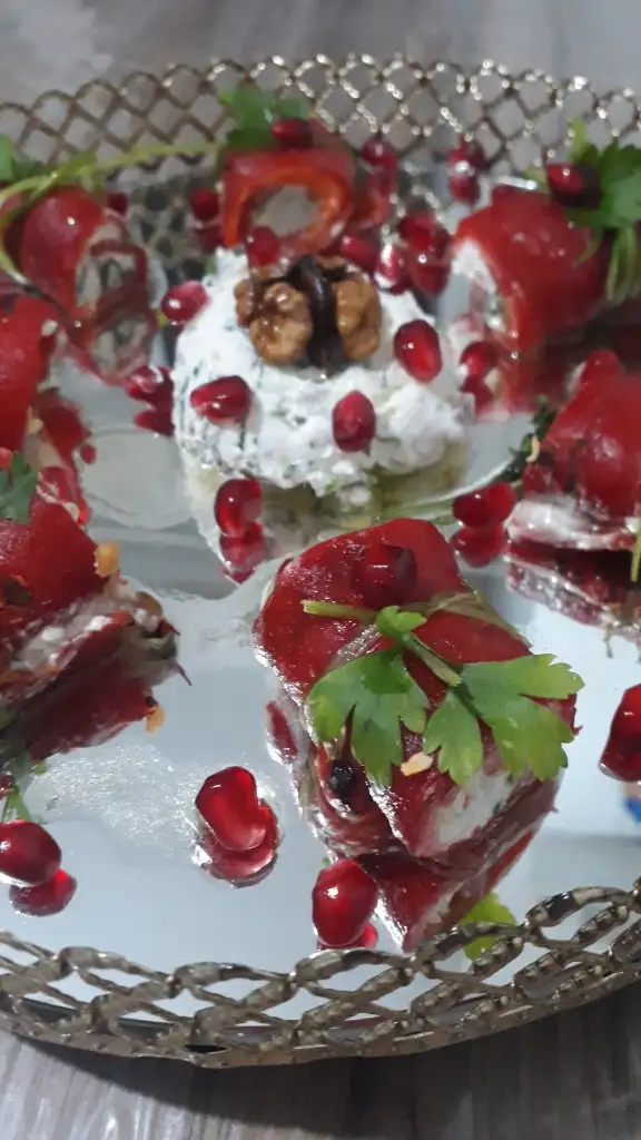 en son da zeytinyağı,sirke ve limon suyunu karıştırıp servis yaparken biberlerin üzerine gezdiriyoruz
