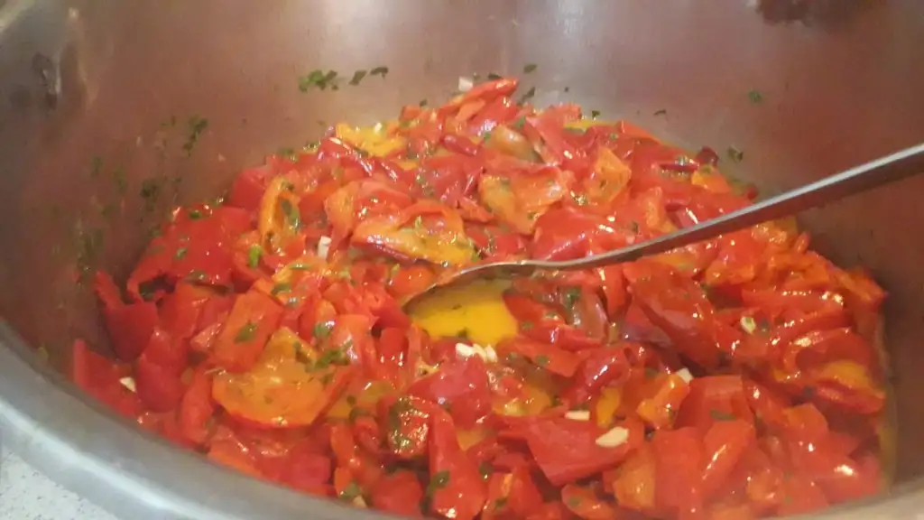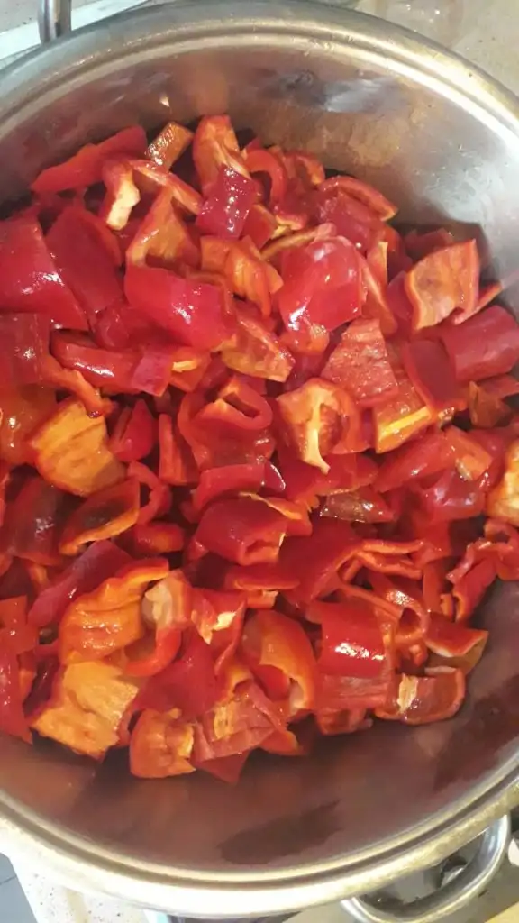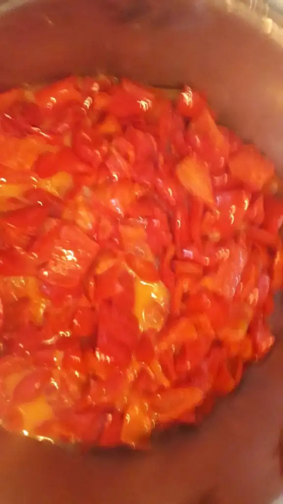 Kaynayınca biberleri ekleyip diriligini kaybedene kadar arasıra çevirerek pişiriyoruz.