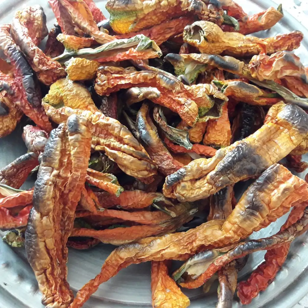 kurumuş biberi fırında yada korda çok az közleriz kışın patates haşlayıca ekmeğe koyar yeriz konyalılar severBunuda ilk gördüm anladım bazılarında çöp kısmı duruyor dedim nasıl kuruyor sulanır kırmızı biber normalde