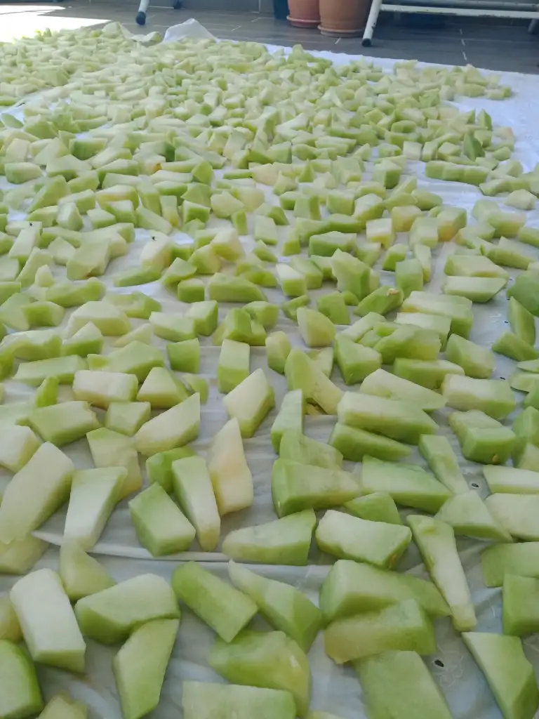 Az önce baktım ben de ilk mesaja. Benim balkon sadece sabah güneşi alıyor maalesef bu yıl. Kayısılar kurudu ama kavun kurur mu bilemedim. Daha sulu olduğu için. Gerçi hava sıcak, gölge de olsa kuruyabilir. Az bir miktar deneyeceğim önce.![]()