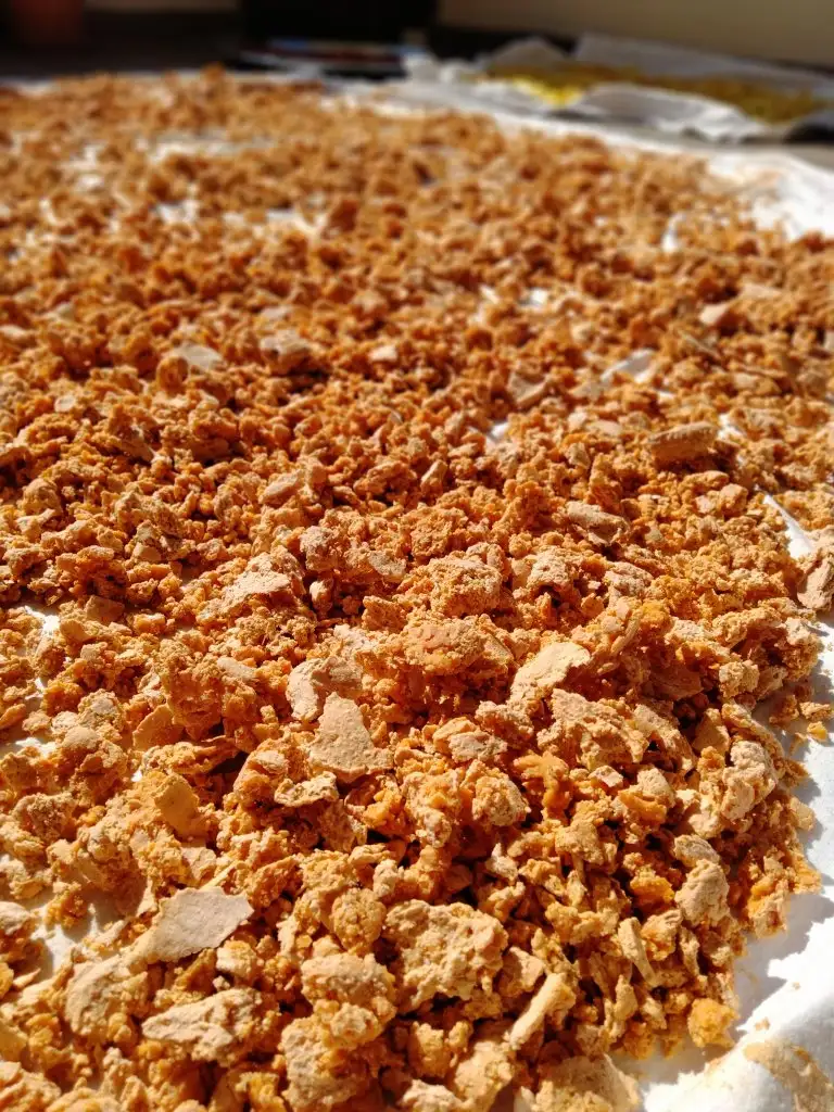 Bez örtü üzerine serip güneşte bekletiyoruz.