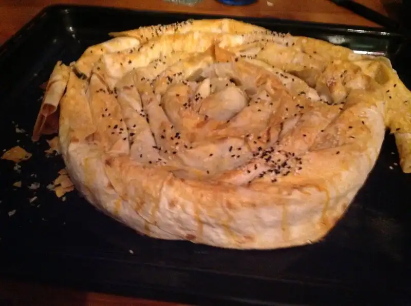 Siteden çıkış yaptım, Papi'yi gece yürüyüşüne çıkardım ihtiyaçlarını gidermesi için, 00:40 gibi eve döndüm hemen ıspanakları yıkadım, kıymayla ıspanağı ayrı ayrı kavurup böreği yaptım fırına attım, yine siteye girdim