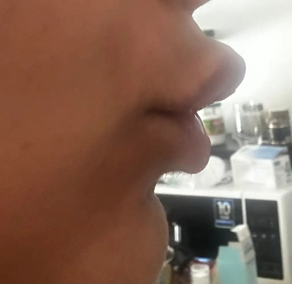 Dolgu ilk yapıldığında da anormal duruyordu, ama ben şişlik falan sandım. Ben doktora dolgudan bir hafta sonra bu fotoğrafları gönderip memnuniyetsizliğimi ilettiğimde o kadar agresif bir tutumla karşılaştım ki telefon açıp açıklama yapması gerekirken bir de egosu yüzünden hatasını kabul etmeyen doktor ve asistanının laf sokmalarıyla uğraştım.