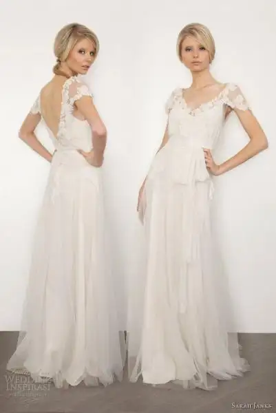 Kısa kollu gelinlikler genelde kolları ince, uzun ve elleri güzel kadınlar tarafından oldukça revaçta bir gelinlik türü.