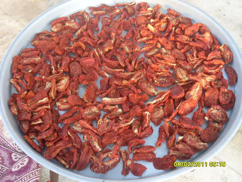sadece domates tuzlanıyor. biber ve patlıcan oyularak tuzlanmadan kuruyor. ama hepsi tamamen doğal haliyle kurutuluyor.