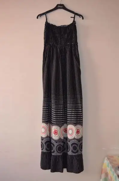 30 numaralı ürün: Siyah uzun önü incili penye elbise. İncilerini kendim diktim. Çiçek detayıyla çok hoş duruyor. Boyuyla oynamadım. Boyu omuzdan ayak bileğine kadar 130 cm. 38-40 bedene uygun. Fiyatı: 5 TL