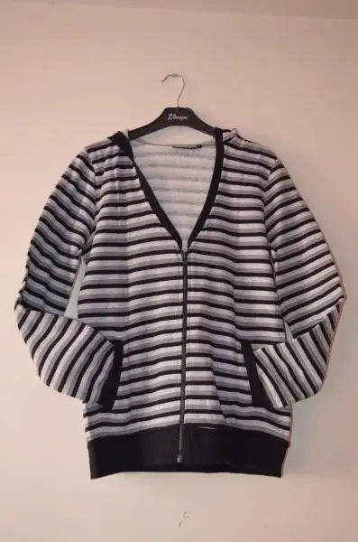 33 numaralı ürün: Siyah çizgili kapşonlu sweat. LCW malı. M beden. Hiç kullanılmadı. Fiyatı: 10 TL