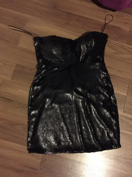11-)Kotondan alinma full siyah payetli mini gece elbisesi. Ben uzerinde tadilat yaptirdim ama hamilelik donemime denk geldiginden giyememistim, sifir duruyor bu nedenle,42 bedene uyumlu uzerinde xl yaziyor. 15 lira