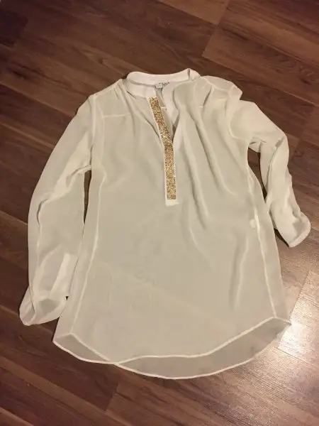 12-)İroni marka kirik beyaz sifon gomlek ,m beden, yikanma sirasinda dusen taslari var ama belli olmuyor, 5 tl