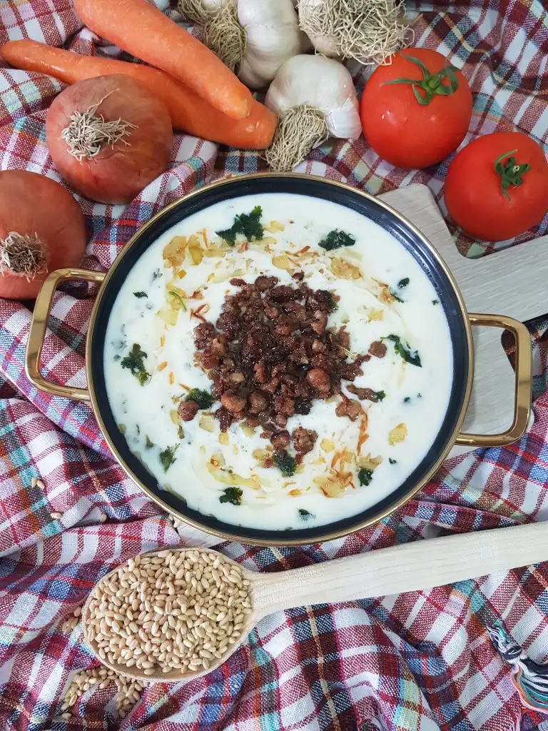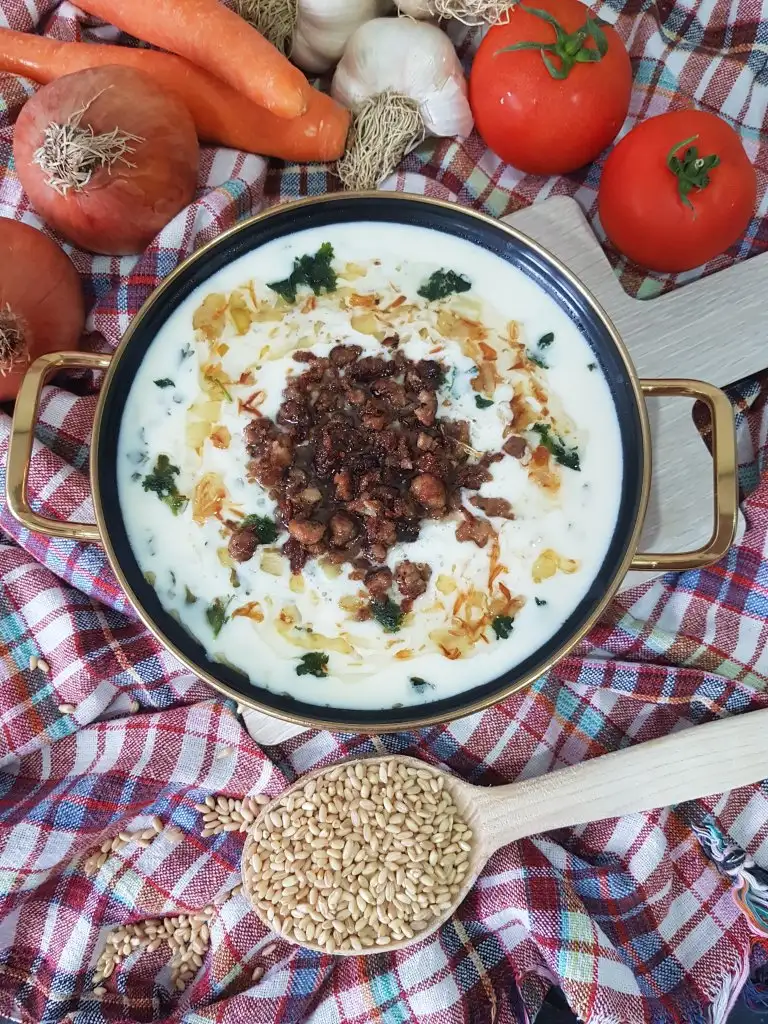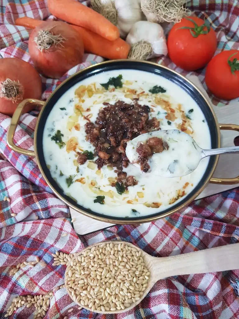 Önce buğdaylarımızı haşlayalım iyice yumuşadıktan sonra yoğurdumuza bir kaşık un ve yumurtayı ekleyip mikserle iyice çırpalım daha sonra yoğurdum haşlanan buğdayların üzerine yavaşça dökelim ve kaynayana kadar sürekli karıştıralım