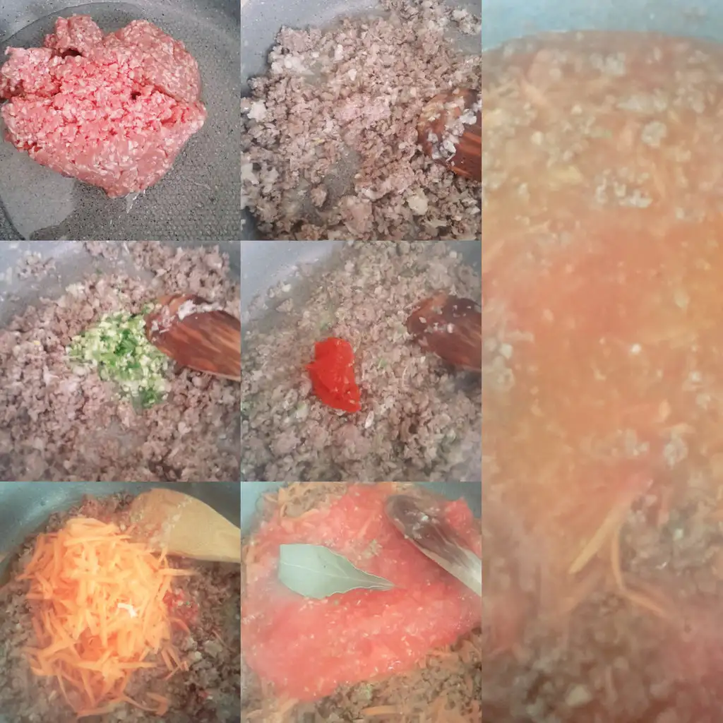 Kiymamizi orta ateste suyunu salıp çekene kadar kavuruyoruz ardından soganlarimizi ekleyip kavurmaya devam ediyoruz sirasiyla biber ,sarımsak, Salça ve havuclari ekliyoruz.Havuclar da solduktan sonra rendelenmiş domates lerimiz ekleyip tuz defne ve baharatlarini ilave ediyoruz.1 su bardağı su ekleyip 45 dk kadar pişmeye bırakıyoruz.