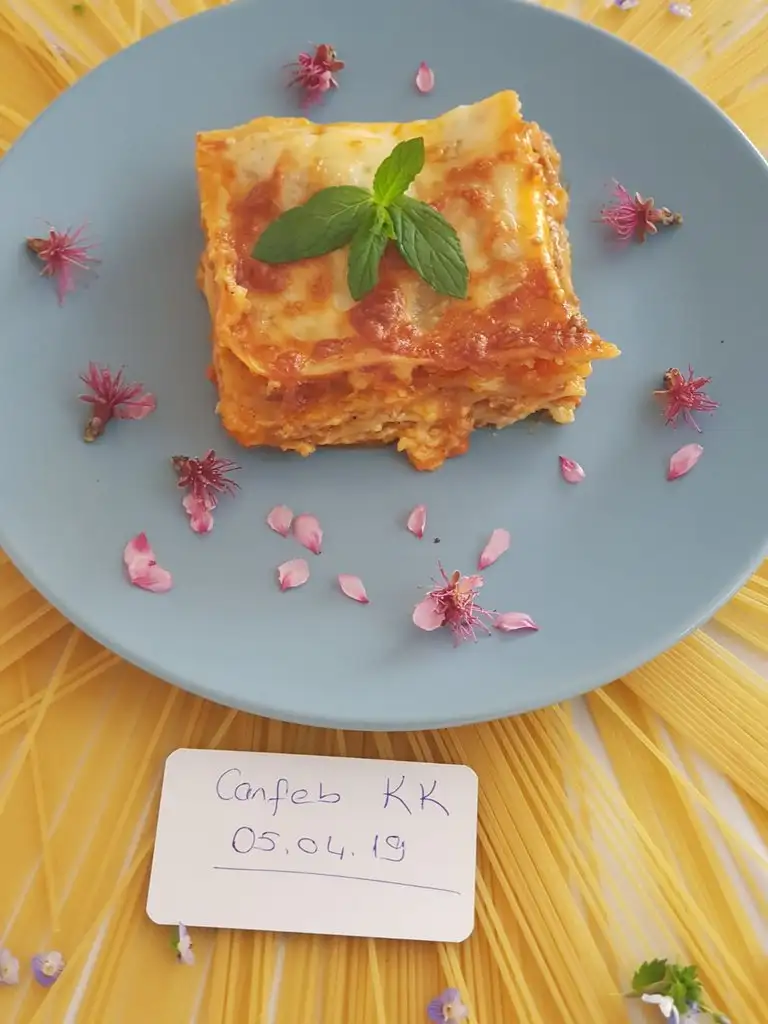 Borcamimizin tabanina bolonez sosumuzdan yayiyoruz tepsiden kolay çıkması için üzerine 2 yaprak lazanya koyuyoruz .Lazanyamizin üzerine Beşamel sos gezdiriyoruz üstüne önce Kıymalı sos daha sonra kaşar serpip tekrar iki yaprak lazanya kapatiyoruz her sırada aynı işlemi yapıyoruz en üst kata Beşamel suruyoruz 200 derecede 20 dk pisiriyoruz çıkarıp üzerine kaşar peyniri serpip bir 20 dk daha pisiriyoruz.