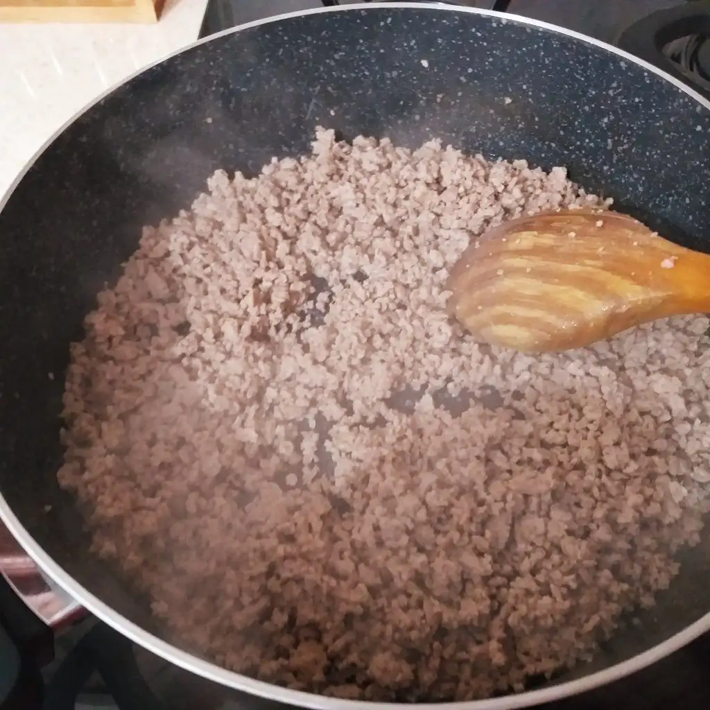 Kıymayı tencereye alıp rengi dönene kadar kavuruyoruz.