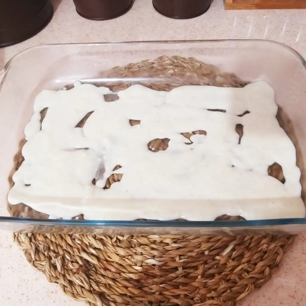 Borcamımızın dibine beşamel sosu ekleyip üzerinede bolones sosunu döktükten sonra hamur katlarımızı diziyoruz.