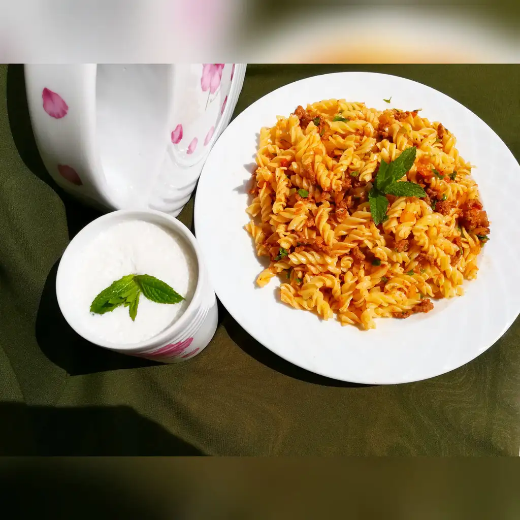 Bir çay kaşığı kadar tuz (hem makarnaya hem kıymalı sosa koydum )