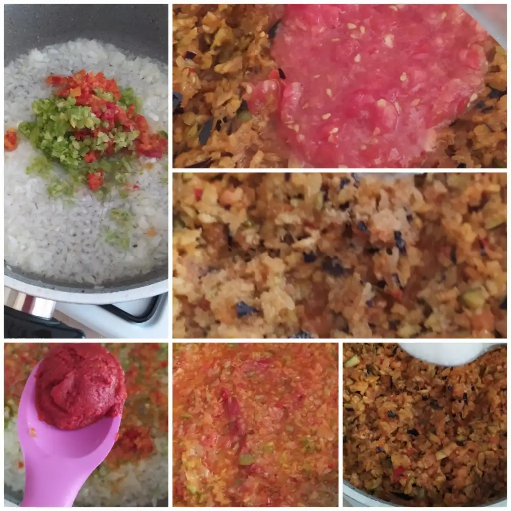Un ,su ve tuz ile kulak memesi kıvamında hamur yoğurup dinlemeye bırakıyoruz.Bütün malzemelerimizi küçük küçük doğruyoruz.Ben el robotunda doğradım hepsini.patlicanli iç için; soğan ve biberleri kavuruyoruz salça ekleyip kavurmaya devam ediyoruz.En son acı suyunu aldığımız minik patlicanlarimizi ekleyip kavurmaya devam ediyoruz ve domates rendesi tuz karabiber ekleyip suyunu çekince altını kapatıyoruz.sogumaya bırakıyoruz.Kiymali harç için sogan ,kiyma domates tuz ve baharatlari kiymaya katıp çiğ harç hazırlıyoruz.