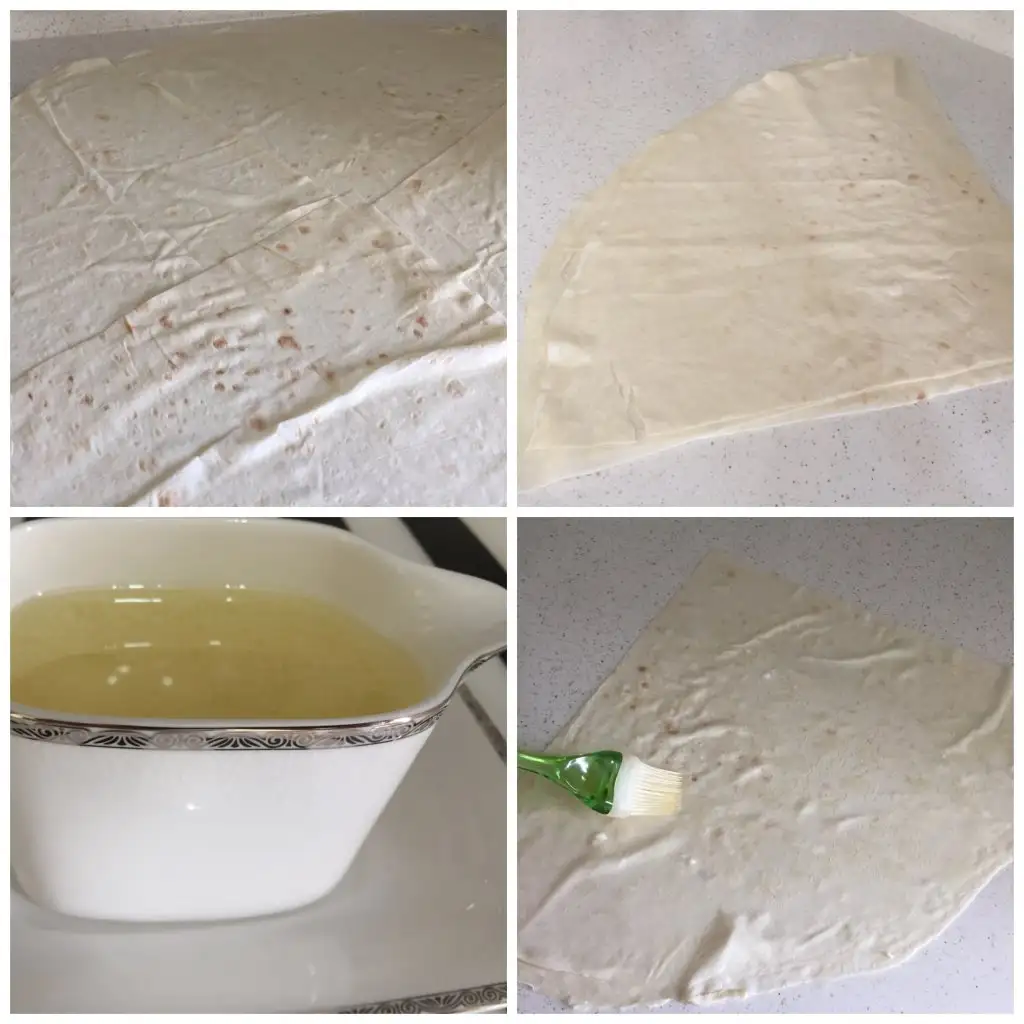 bütün yufkaları bu şekilde yaptıktan sonra yağlı kağıt serilmiş fırın tepsisine yerleştiriyoruz, üzerine kalan sostan sürüp 180 derecelik fırında üzeri pembeleşene kadar pişiriyoruz( yaklaşık 25 dakika)