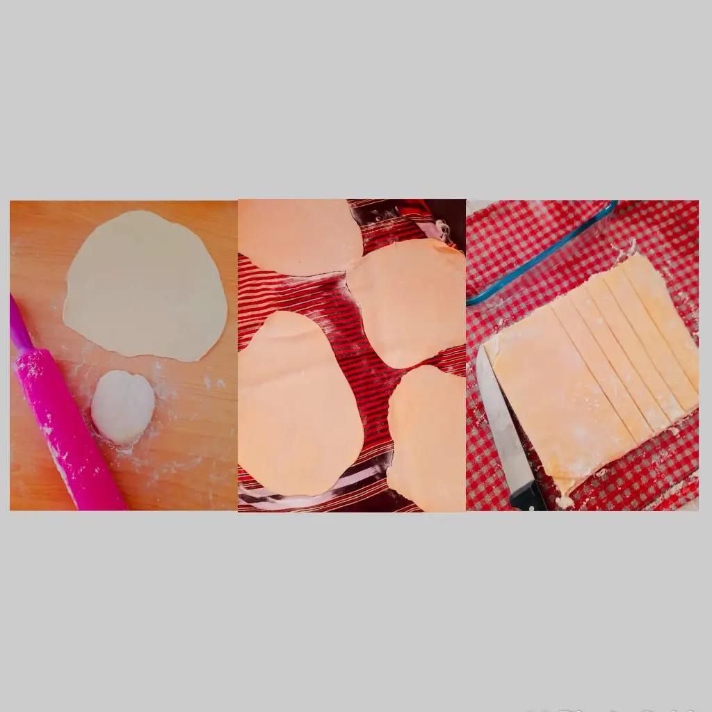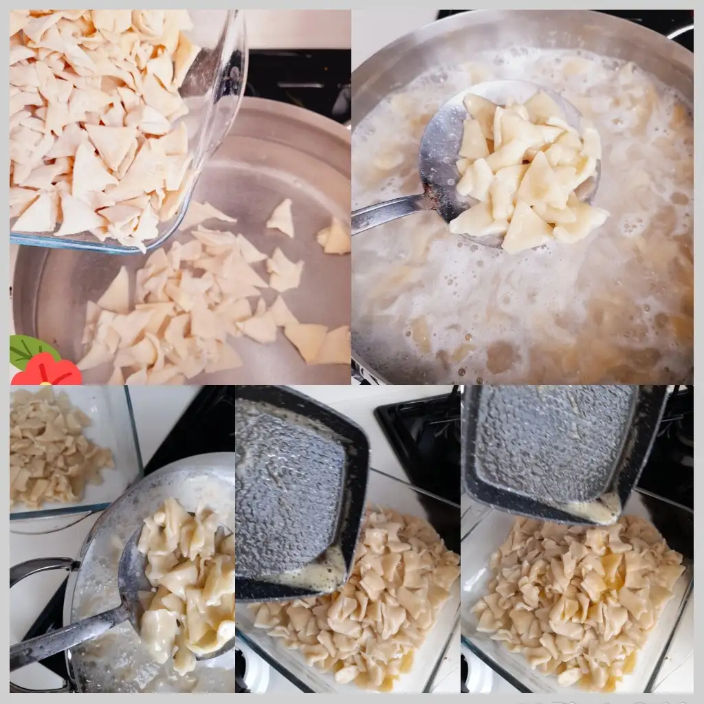 bu tatar böreği tam benlikTatar böreği hamur parçalarının genellikle üçgen şeklinde kesilmesi ile hazırlanan içsiz mantıya verilen addır. Osmanlı mutfağında bulunur.Türk mutfağında yer alır. Türkiye'de Erzurum Eskişehir Seydişehir ve Gaziantep başta olmak üzere birçok bölgede bilinen bir yemektir.