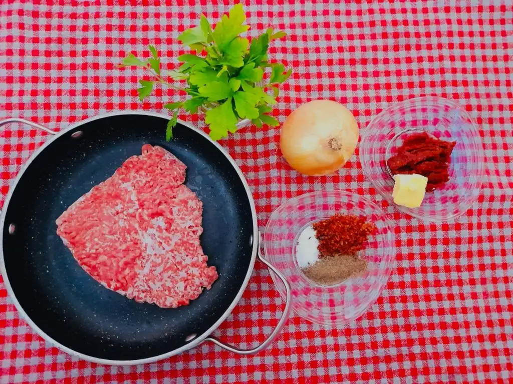 101 gr kıyma(kıymasını kendime göre yaptım 450-500 gramla arttırabilirsiniz malzemelerle yapılmış hamur da tam şuan )